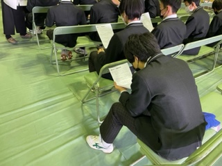 本日4時間は、明日に迫った公立高等学校一般選抜の事前指導です。