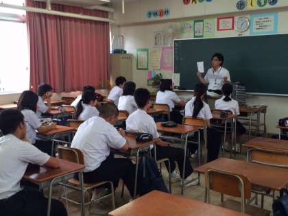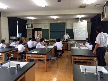 8月31日、3年生は高校の先生に来ていただいて、出前授業を受けました。公立では「大阪ビジネスフロンティア高校」「南高校」「生野工業高校」、私立では「好文学園高校」「成蹊女子高校」「大阪国際滝井高校」の合計6校から10名の先生に来ていただき、10講座が開かれました。