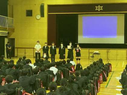 司会進行は生徒会役員のみなさんです。 生徒会活動の紹介をしています。