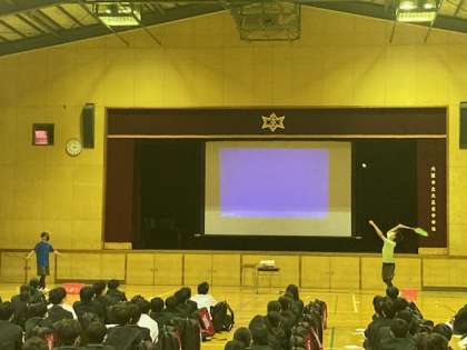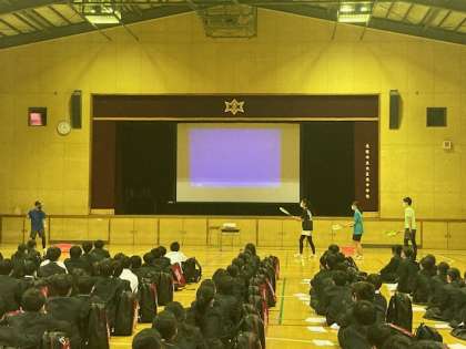 男女ソフトテニス部の発表です。ラリーの様子を披露してくれました。