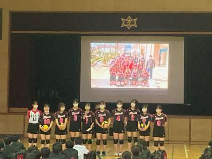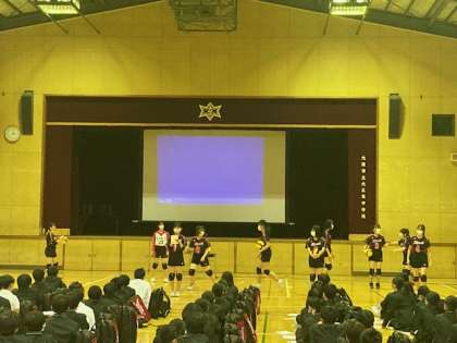 女子バレーボール部の紹介です。パス練習と動画を使って紹介をしてくれました!