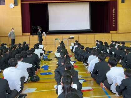 本日、1限目2年生は体育館で道徳の授業を行いました。