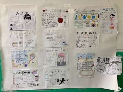 2枚目の写真は春休みに2、3年生が作ってくれた部活動紹介ポスターです。いろんな工夫がありますね。