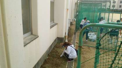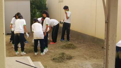 約160名の生徒と、保護者は約30名で、校内の草引きや、学校周辺の清掃活動に汗を流しました。