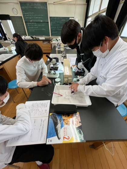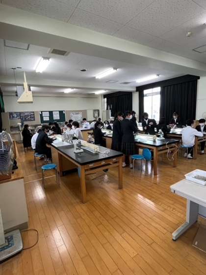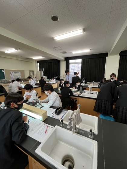 本日1限目、2年4組で理科の実験を行いました。
