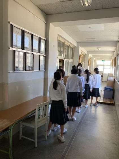 廊下で待機中も静かに並んで、中学生らしい姿が見えました。