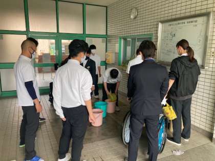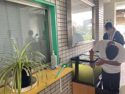 自立活動の一環で、水槽の掃除をしてくれています。