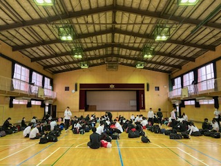 3年生はそんな肌寒さや雨のパラつきはどこへやら、にこにこ笑顔で修学旅行に向けて登校しています。