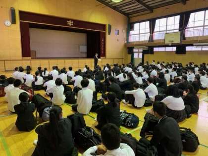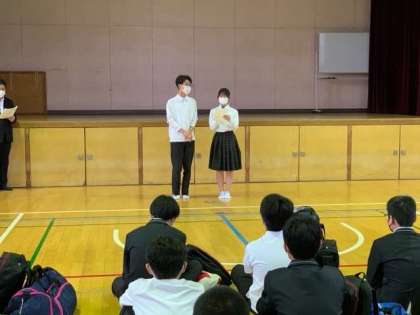 体育館で出発式を行いました。いってきます。