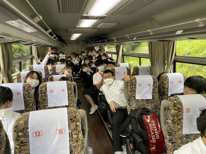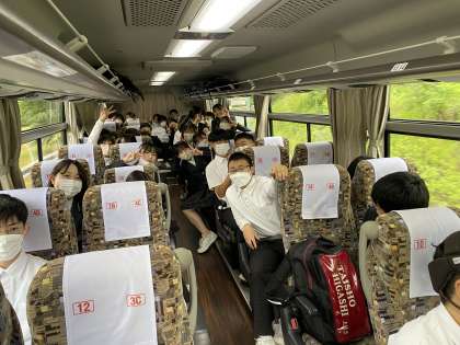 福山SAを出発した3年1組のみんな、元気いっぱいです!