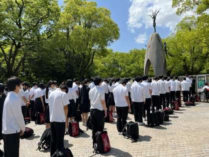 昼食を済ませ、平和の石搭前で平和セレモニー。