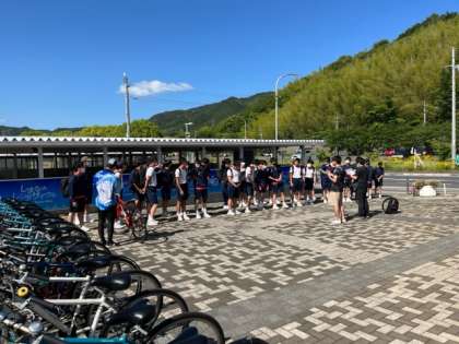サイクリングチーム、オリエンテーション中。 ケガのないように楽しんでください。