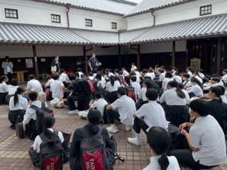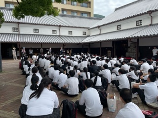 全員無事に到着。今からバスに乗って、うずしおクルーズへ移動します。