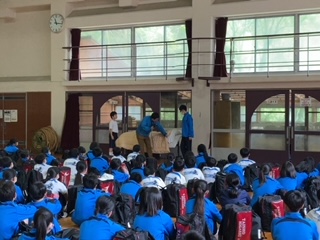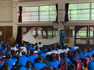 寝具類の扱い方を聞いています。説明のお手伝いをしてくれています。