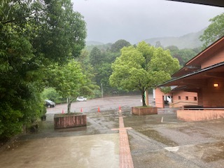 雨のあまりのひどさに野外炊飯を中止し、食堂でカレーを作ってもらうことにしました。