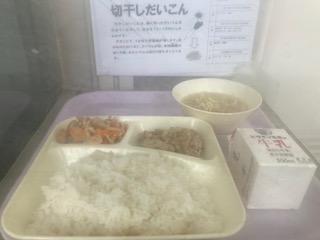 豚肉のごまみそ焼き すまし汁 切干しだいこんのいため煮 ご飯 牛乳