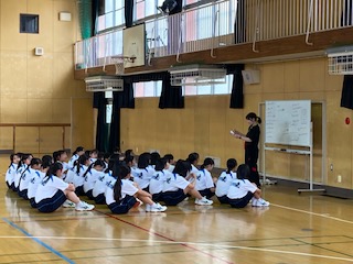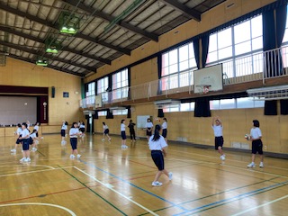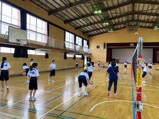山口先生を指導されている先生も大学から来られ、大正東中学校の先生も何人にも見られる中、一生懸命に授業をしました。生徒のみなさんはたくさんの大人に見られながら、なかなか続かないラリーにも挫けることなく、温かい言葉をかけ合いながら、バレーを楽しんでいました。
