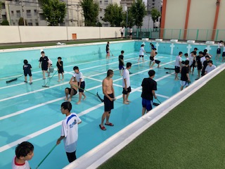 今日の放課後、プール授業開始に向けて、男女バスケ部のみんなが大正東中のみんなのために一生懸命掃除してくれました。このように貢献してくれる人がいることに感謝しましょう!