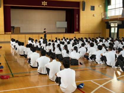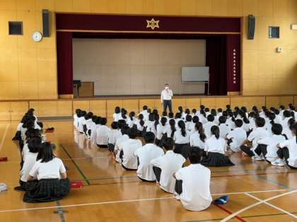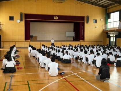 本日、2年生は体育館で学年集会を行いました。