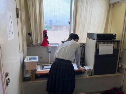 本日は、昨日の雨の影響でグラウンドの状態がよくないため放送での集会となりました。