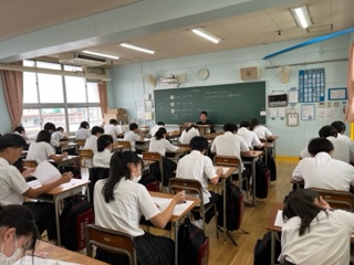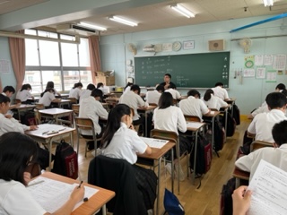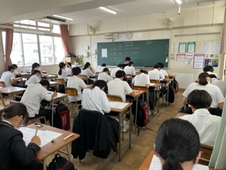 1時間目、音楽のテスト、1年生3.4.5組の様子です。