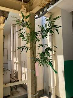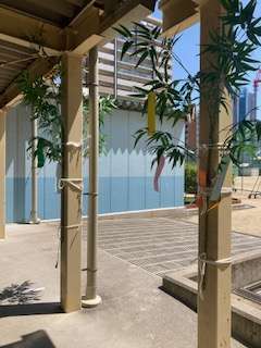 日本では、願い事を書いた色とりどりの短冊を笹につるし、星にお祈りをする習慣がありますね。クラスで配られた短冊にお願い事を書いて、通用門そばの笹につるしてみましょう。