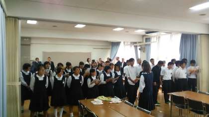 写真は、学級で合唱コンクールに向けての唄の練習をしているところです。
