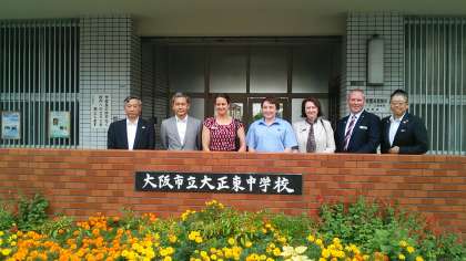 最後に正門で記念撮影、副校長先生の手作りの記念品をいただきました。