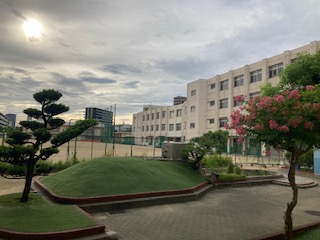 今日は雲が多いですね。みなさん、昨日の午後は少しゆっくりできましたか。今日は通常の50分×6限です。曇ってるせいか湿度も高めです。水分をこまめにとって、熱中症予防をしましょう。
