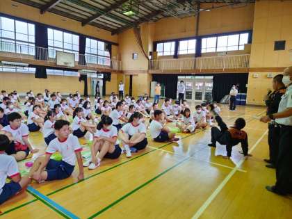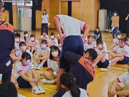 6時間目は心肺蘇生法を学んだ後、持ってきた身の周りの物を使って、応急処置の方法を学びました。