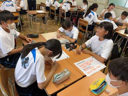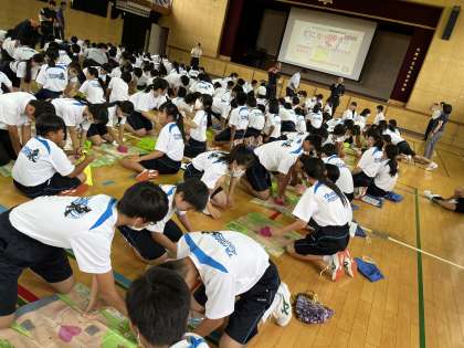 昨日の1年生の防災研修の様子です。みんな真剣に取り組んでいます。