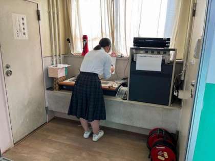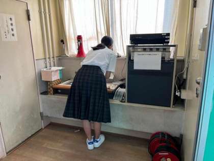 本日は、朝からの気温上昇とグラウンド状態不良のため放送での集会となりました。