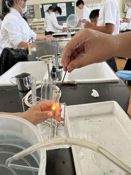 本日、3限目1-4で酸素の性質の調べる実験を行いました。