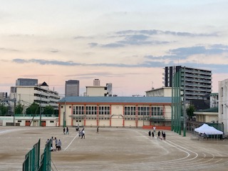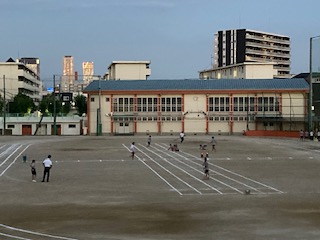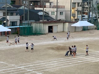明日の予行に向けて、先生方と陸上部の生徒のみんなでグラウンド整備をしてくれています。