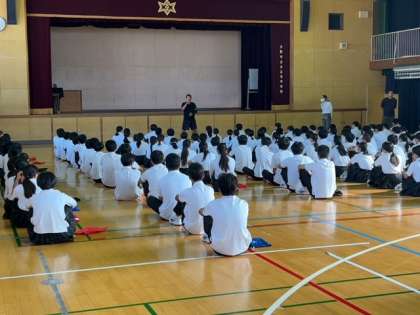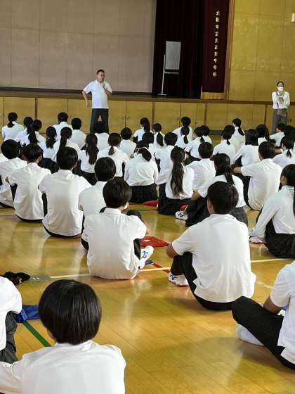 本日体育館にて2年生 学年集会がありました。 亘先生より学校生活のルール、タブレット端末の使い方についてのお話がありました。