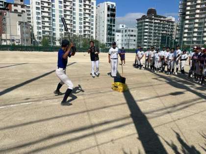 9月30日(土)に堀江中学校で行われたオリックス・ソフトバンク合同野球教室に本校の軟式野球部が参加しました。