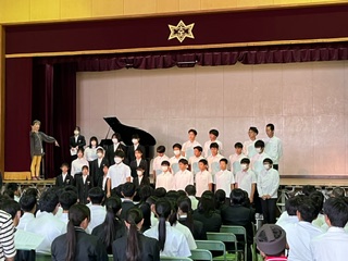 本日18日(水)の6時間目、3年生は体育館で合唱コンクールのリハーサルです。