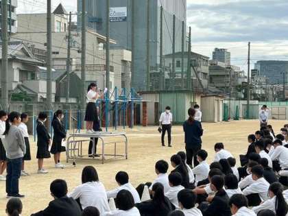 私はこの大正東中学校を明るく、元気の良い学校にしたいです。そのためにも、積極的に挨拶運動などに取り組んでいきたいです。