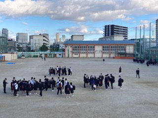 避難訓練終了後は、前回同様集団下校をしました。前回よりもスムーズに集まり、下校できていました。