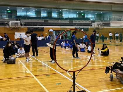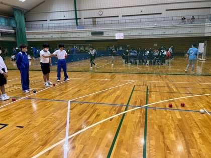 ふれあいデイキャンプでは卓球バレーやフリスビー、ボッチャなどの取り組みをして楽しんでいます!