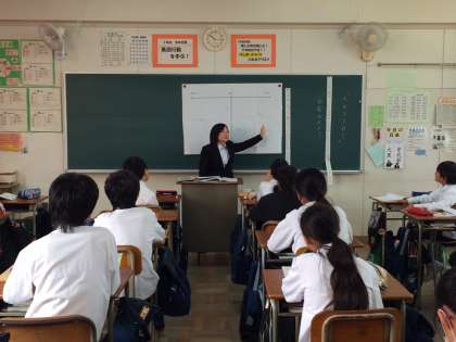 1限目 神戸教諭(特別支援学級)、2限目 天野教諭(1年3組)、3限目 東本教諭(3年3組)、4限目 池内教諭(3年5組)の順に行いました。大阪市教育センターより指導員に来校していただき、それぞれの授業参観と授業後の指導をしていただきました。