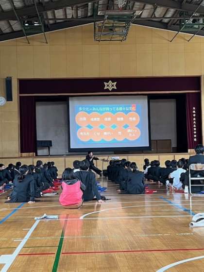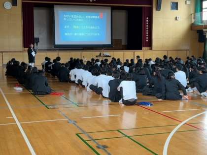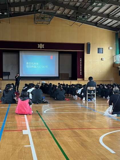 本日、2年生は体育館で多文化共生、在日外国人ついて学習しました。