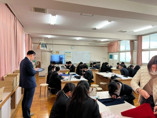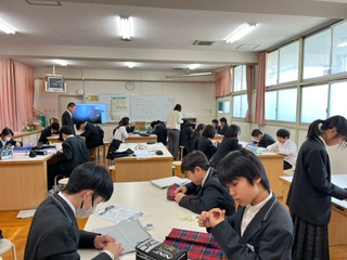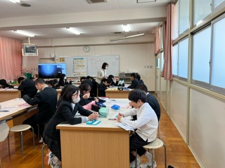 4時間目、1年生4組 福田先生の家庭科の研究授業の様子です。