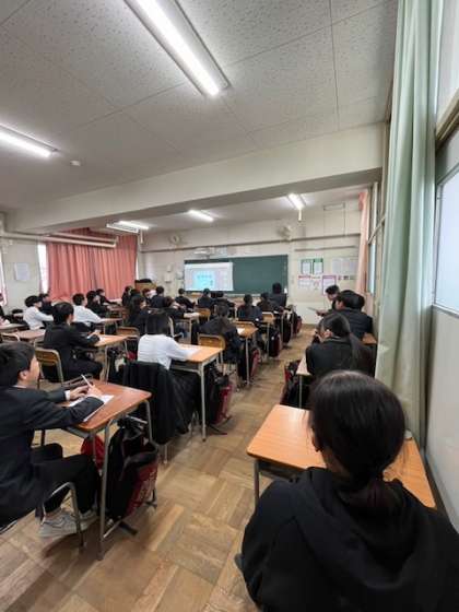 本日2年生は5、6限目教室にて村上先生による進路学習です。