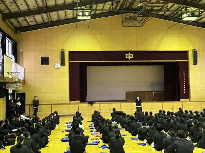 本日、朝に学年集会を行いました。