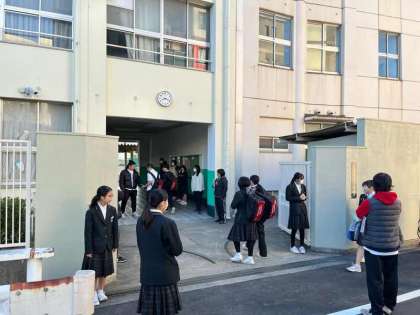 挨拶運動も残り2日です。より多くの生徒が挨拶を返してもらえるよう、生徒会役員が声掛けをしています。