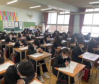 今日は1、2年生学年末テストです。廊下にも緊張感が伝わる位に一生懸命に取り組んでいます。