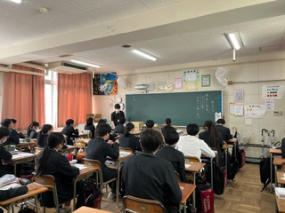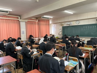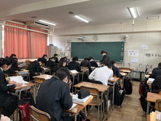 3・4時間目は、卒業式の練習。給食後は、公立高等学校の一般選抜受検の事前指導です。最後の教科授業風景です。