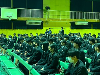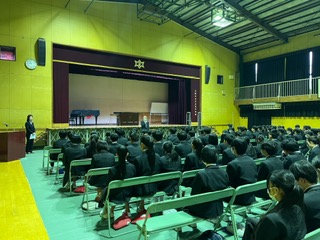 3年生1限目は本校同窓会である「暁光会」の入会式を行いました。今年度の暁光会代表 鷲原 知良さまから暁光会の説明を受けました。