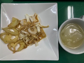 7組の自立活動の一環で調理実習を行いました。学校の畑でとれた玉ねぎで、3種類もの玉ねぎ料理を作ってくれました。とても美味ししかったです!